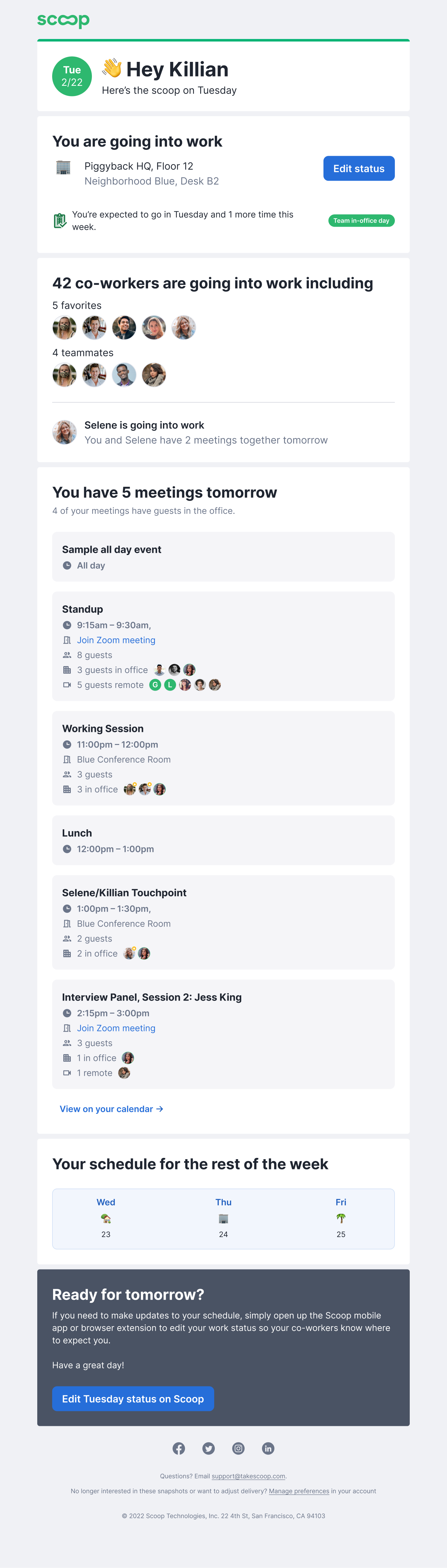 Scoop, a platform for hybrid teams, initially focused on health and safety features—like office capacity planning, wellness checks, and compliance workflows—to support companies during the return to office post-pandemic. But as companies shifted toward long-term hybrid models, we saw a growing gap: employees had flexibility to choose in-office days but lacked the visibility and tools to coordinate effectively with teammates.