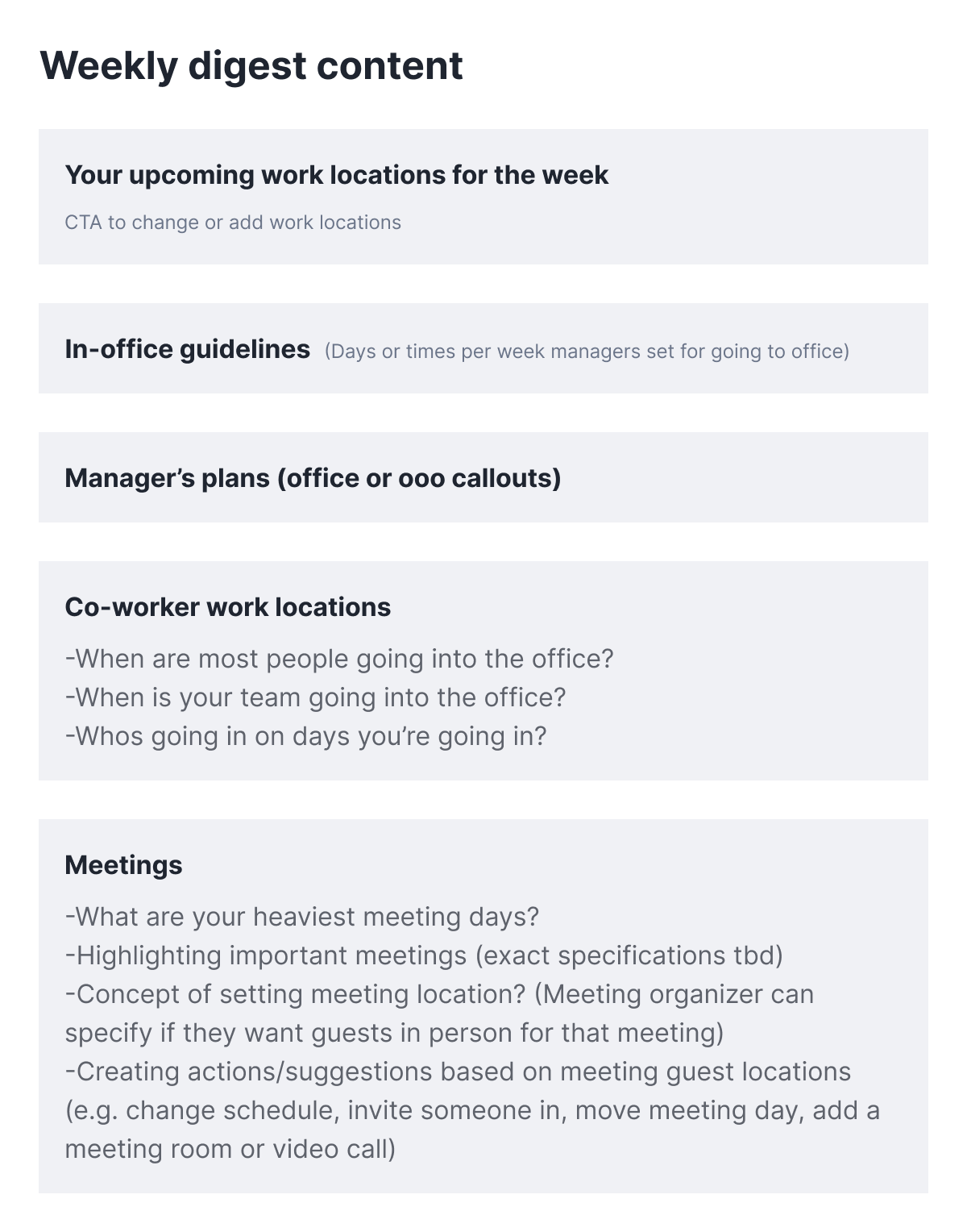 - Leveraging calendar data to surface relevant context like meeting volume, in-person attendees and early start times
