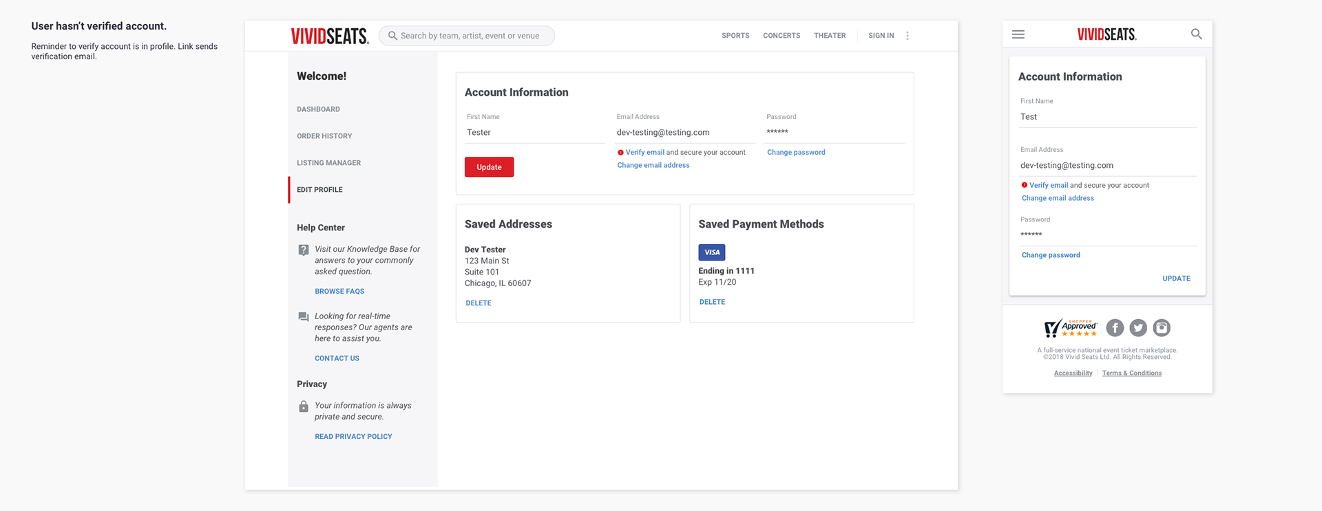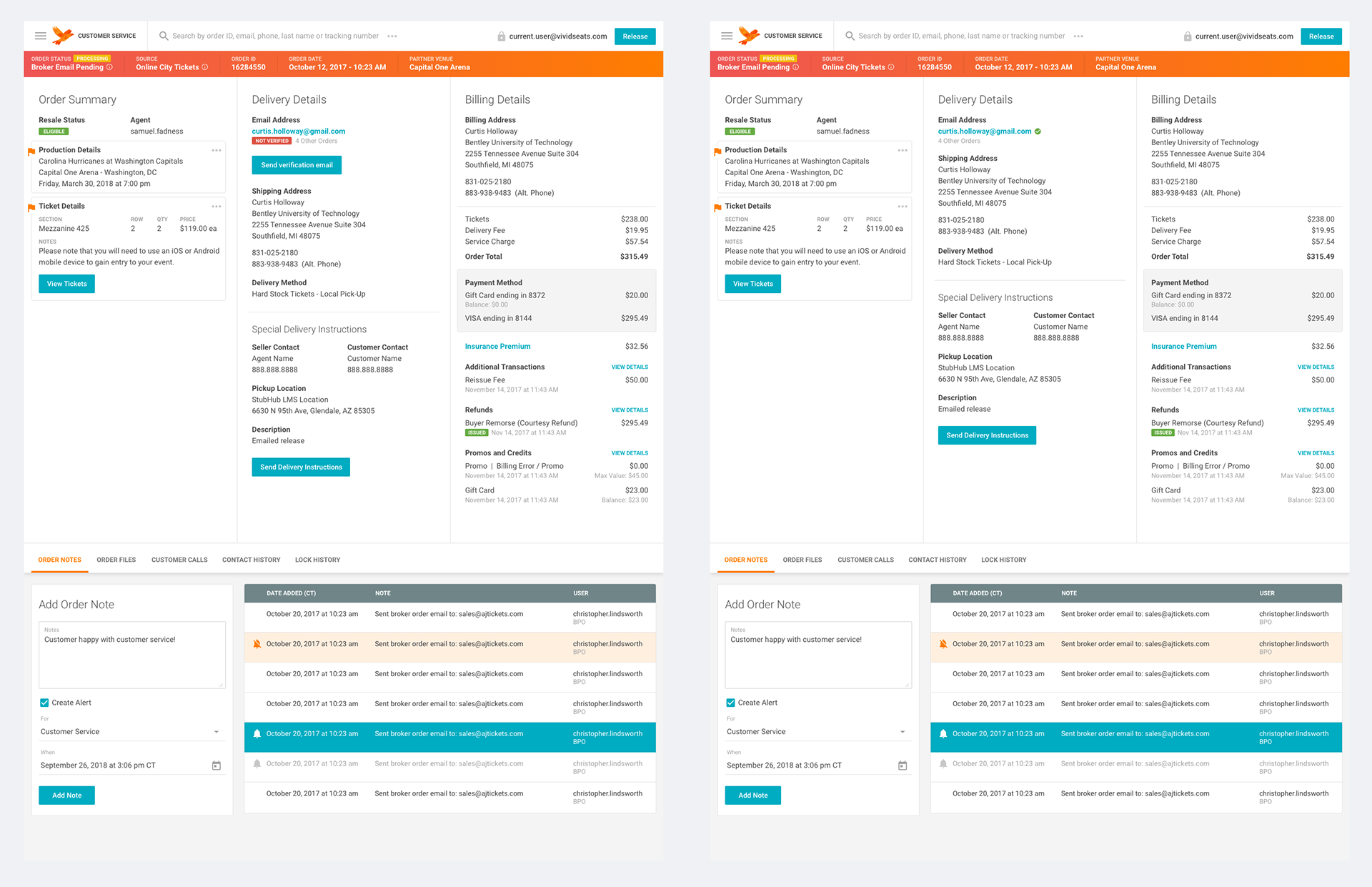 The final step in this project was adding verification tags and history to orders for our customer service agents. The goal was for agents to easily be able to see if a customer is verified or not and send a verification email for them if not.