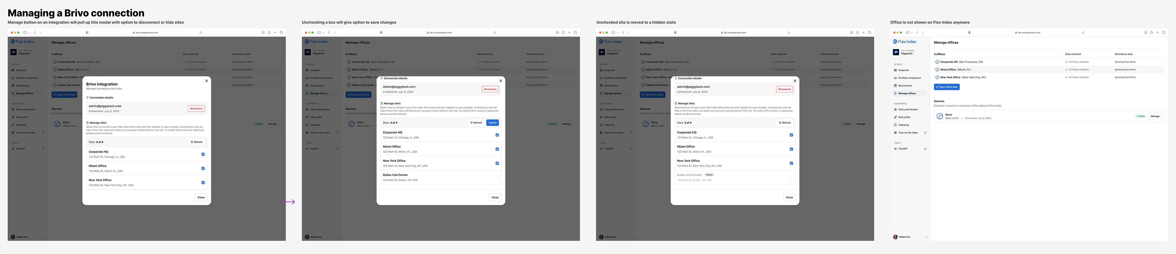 Once a connection is established, there are management options at the company level to disconnect or hide individual sites.